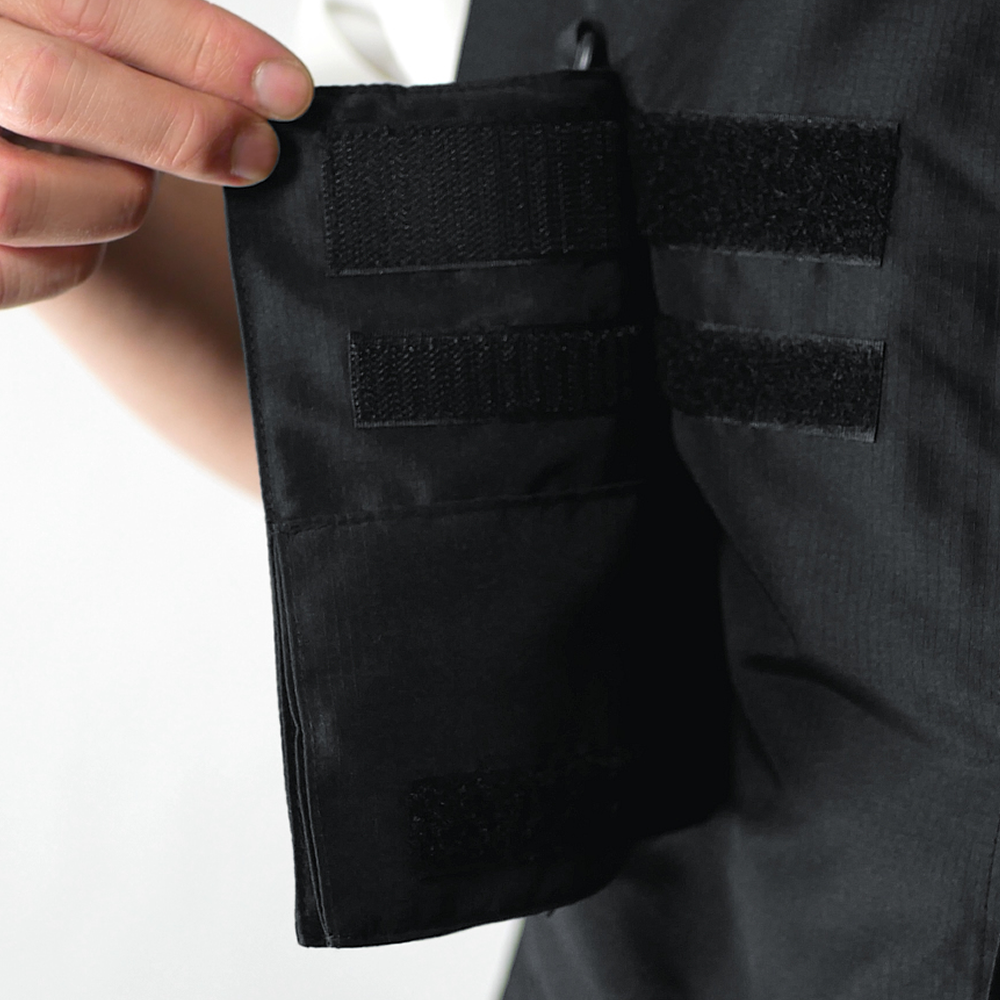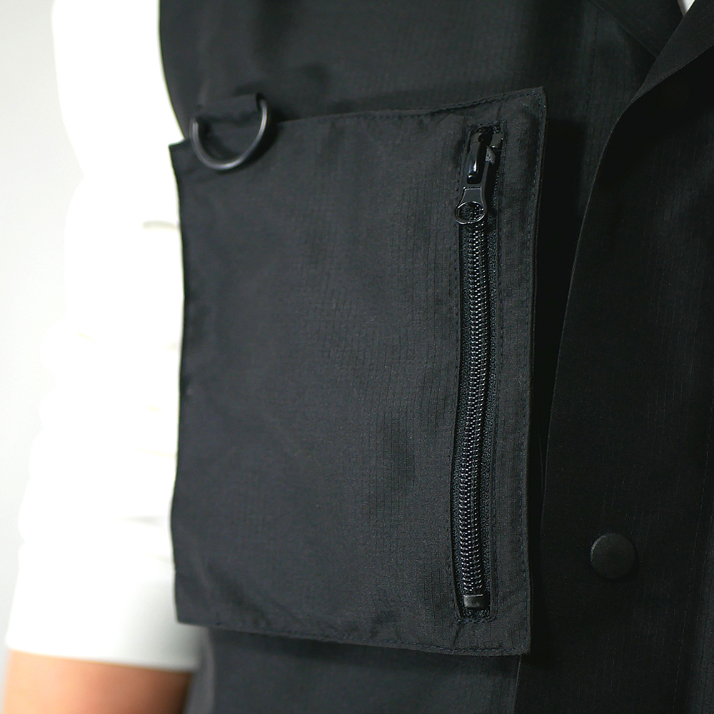 軽量× 高耐久のポリエステルリップストップ使用。サコッシュバッグ付きのギミックベスト。