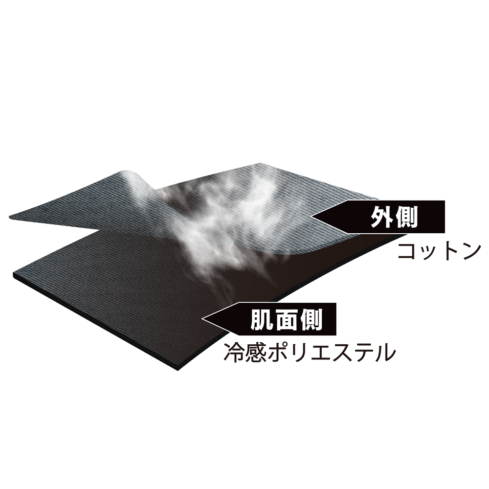 綿を外側に、接触冷感+吸汗速乾ポリエステルを肌面にした2層構造が快適な気心地を実現。左右隠しポケット付き。