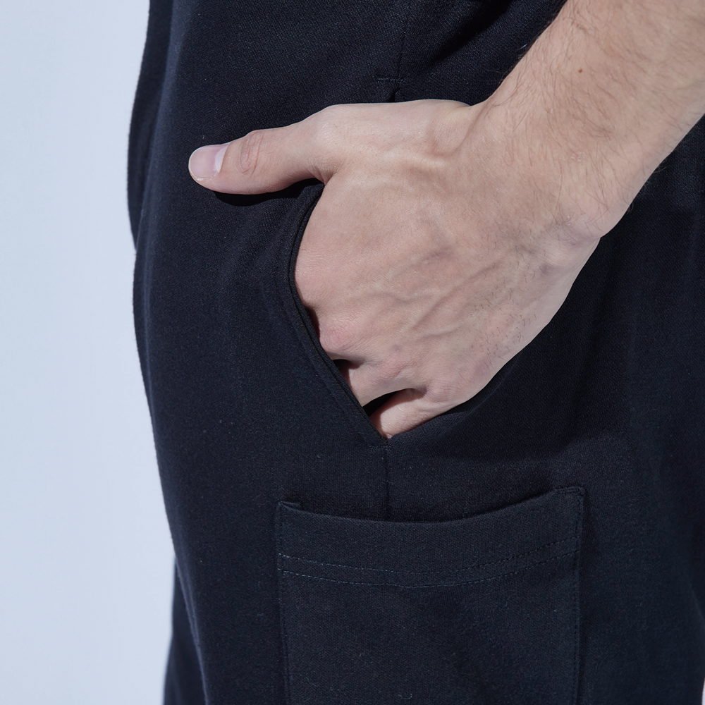 表地は綿、裏地は冷感ポリエステルのハイブリッドハーフパンツ。