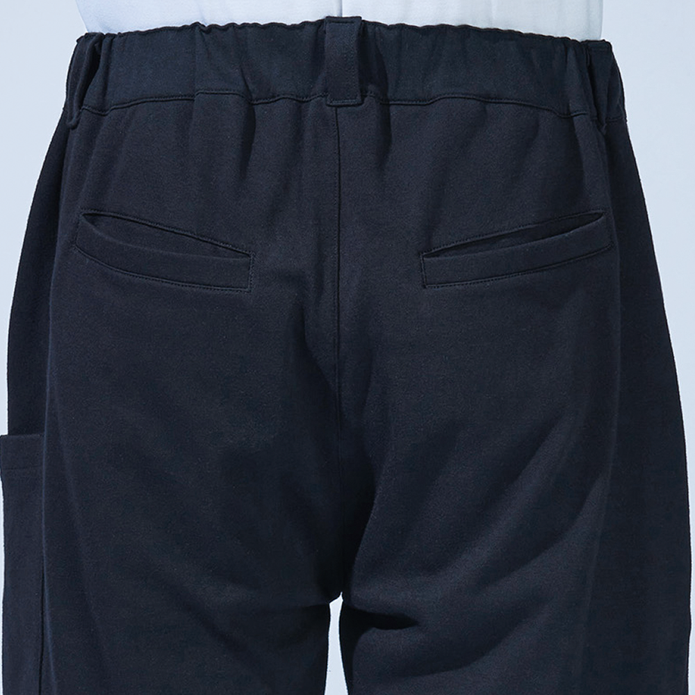 フロントファスナー、ベルトループ、サイドポケットを装着した冷感5ポケットパンツ。