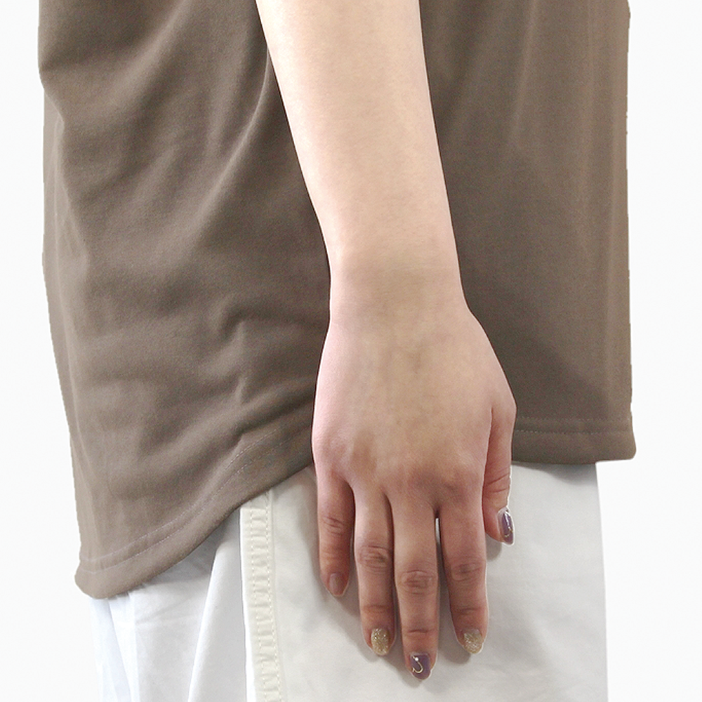 光の屈折を利用した汗染み軽減T シャツ。綿タッチでテカリを抑えたポリエステルを使用し、乾きも早い。